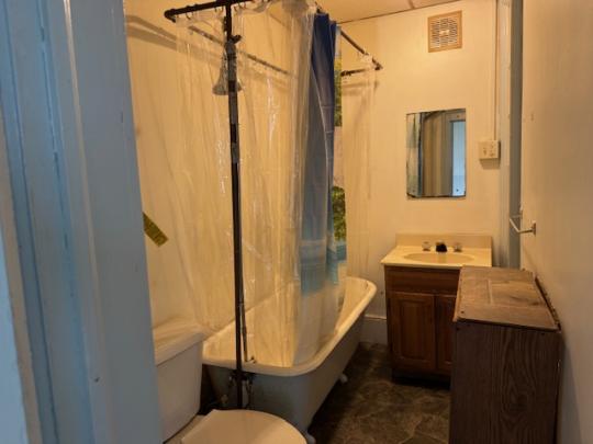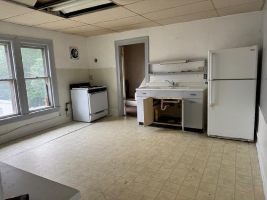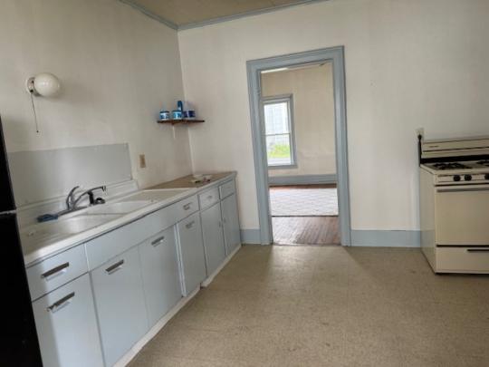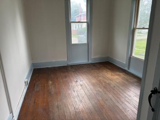 3-unit apartment building with off-street parking for 6 cars.  Separate gas and electric meters.  Water and sewer included in the rent.  Currently these apartments are unoccupied.  All 3 units come with a stove/oven and refrigerator.  The lower front apartment is a 2-bedroom apartment with a living room, kitchen and a full bath.  The 3rd apartment is upstairs.  This apartment has a living room, dining room, kitchen, and a bedroom with a 1/2 bath.  There is also an office and a full bath.  The off-street parking is locked in the large lot behind the building.